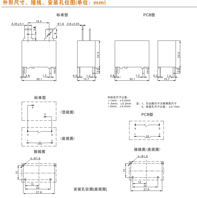尺寸要求繼電器的體積:長、寬、高