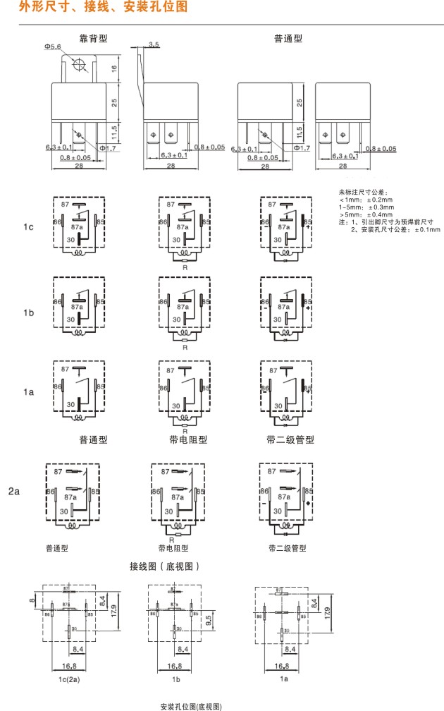 觸點形式繼(ji)電(dian)器常(chang)開或常(chang)閉(bi)(常(chang)見4、6只腳(jiao))、轉換(huan)(常(chang)見5只腳(jiao)或8只腳(jiao))